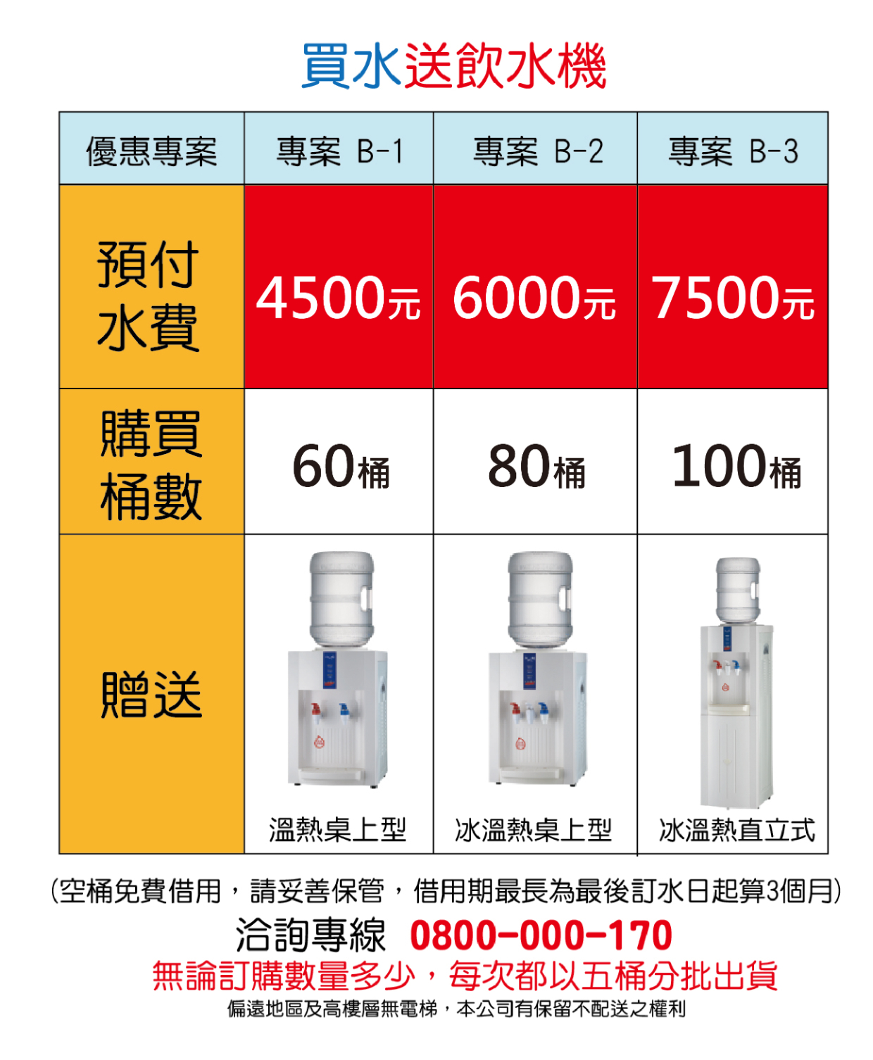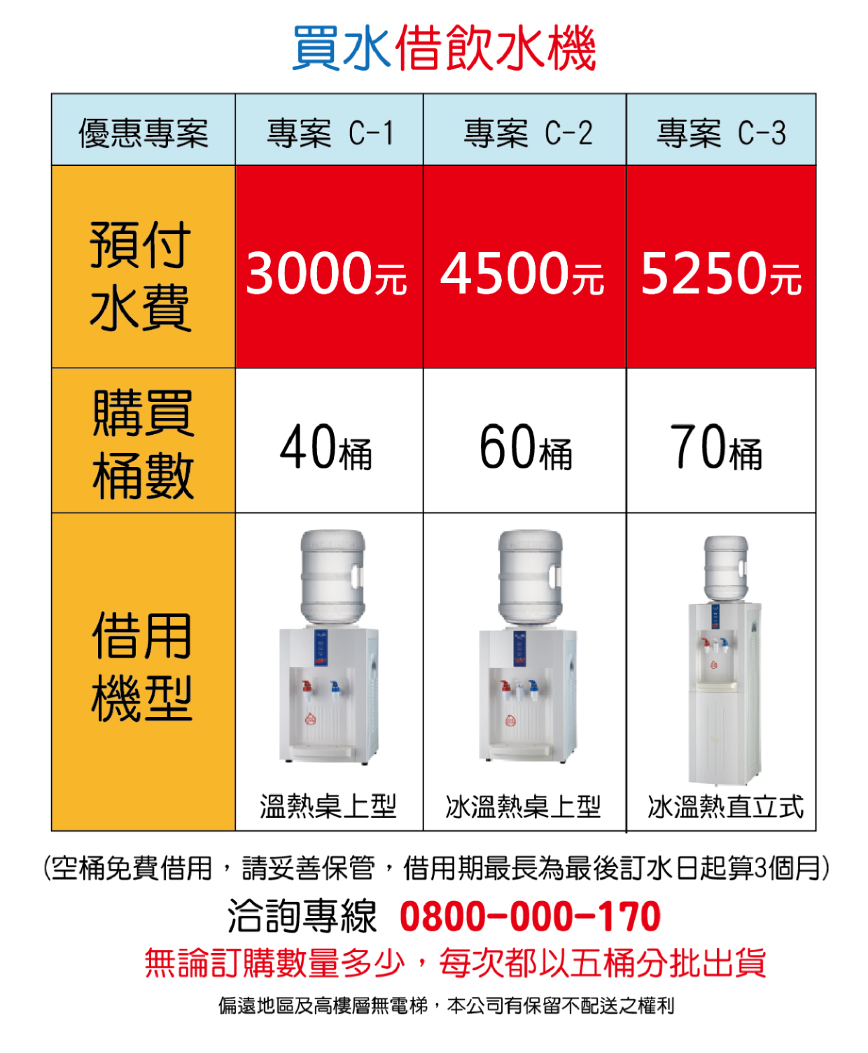 現付3000元 立即享有40桶舒沛超純淨桶裝水+溫熱桌上型飲水機(借用)